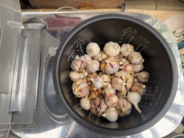 この分だとあと一週間ほどでおいしい黒ニンニクが食べられそうです。