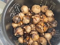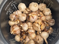採れたての生ニンニクを使うと水分を多く含んでいるので、グミのようなふっくらした黒ニンニクにはなりません。 |