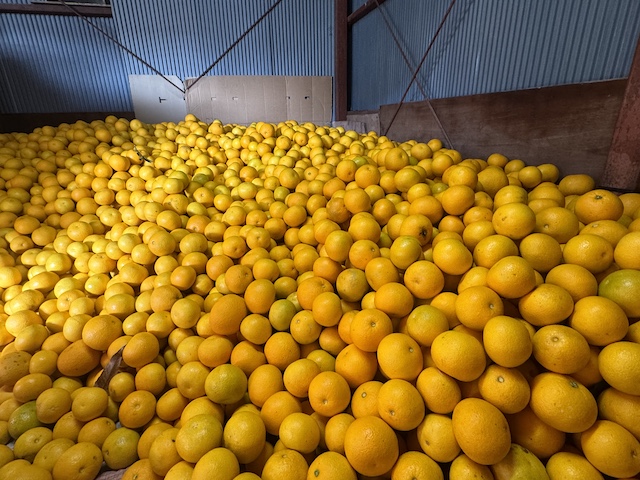 今年の八朔は表年にあたり収量はかなり多くなっており、傷や病気に侵された果実も少なく品質の良い果実をお届けできそうです。収穫は年末まで行い、2月ころから食べ頃になります。お店で当園の果実を見かけたら是非ご賞味ください。ご期待を裏切ることはないと思います。