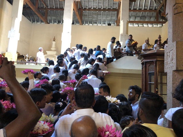仏歯寺の中の様子。二階に仏様の歯が安置してあり、公開時間が決まっています。たまたま訪問した時公開時間になっており大混雑。