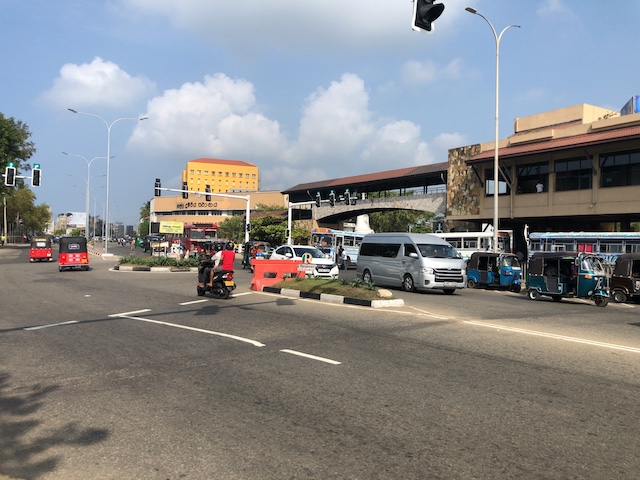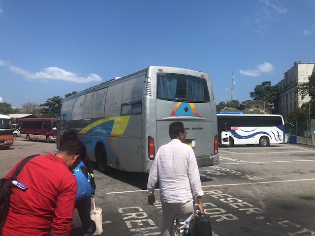 バンダラナイケ国際空港前のバス乗り場。強烈なボロボロバスが来ました!それでもエアコン付き!